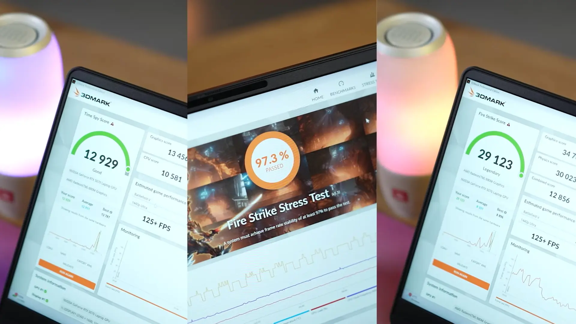Dari gameplay yang terlihat, laptop ini mampu menjalankan game AAA dan kompetitif dengan sangat lancar. Baik di Cyberpunk 2077, Shadow of the Tomb Raider, maupun Forza Horizon 5, FPS tetap stabil bahkan di setting tinggi.