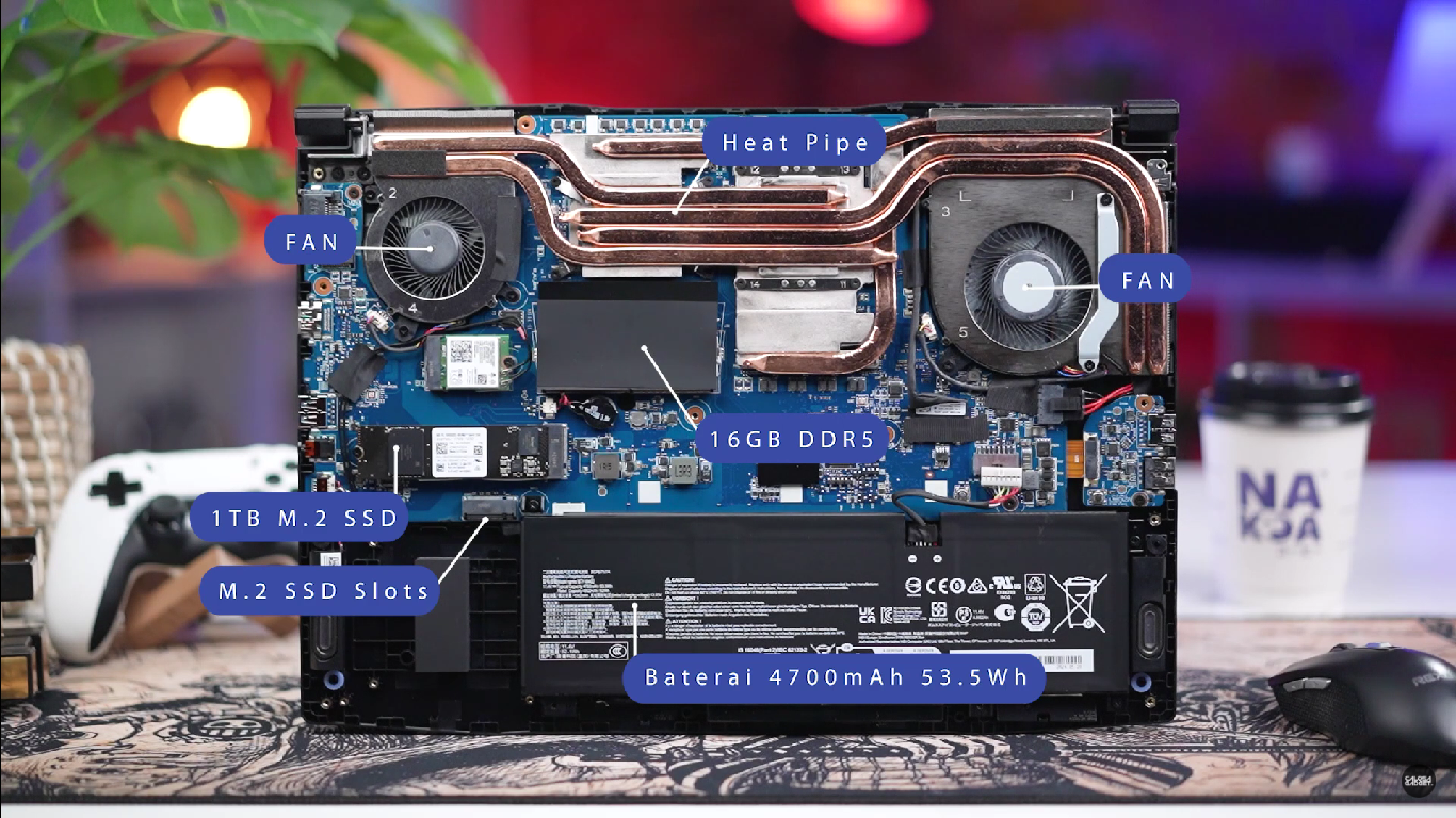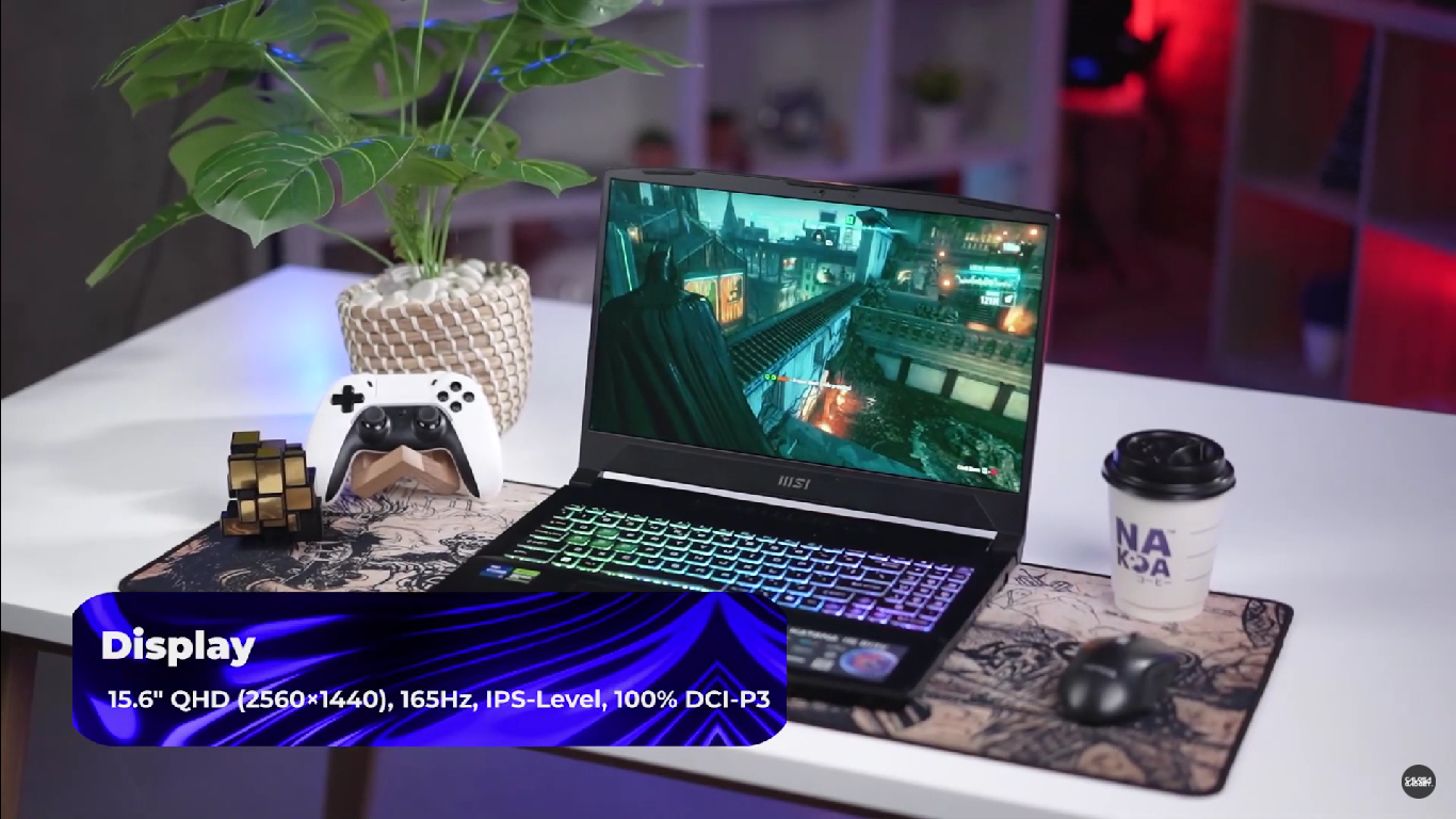 Laptop ini juga memiliki layar berukuran 15,6 inci dengan resolusi QHD (2560×1440), refresh rate 165Hz, dan cakupan warna 100% DCI-P3. Kualitas layar ini sangat ideal untuk gaming dan kebutuhan profesional seperti desain grafis.