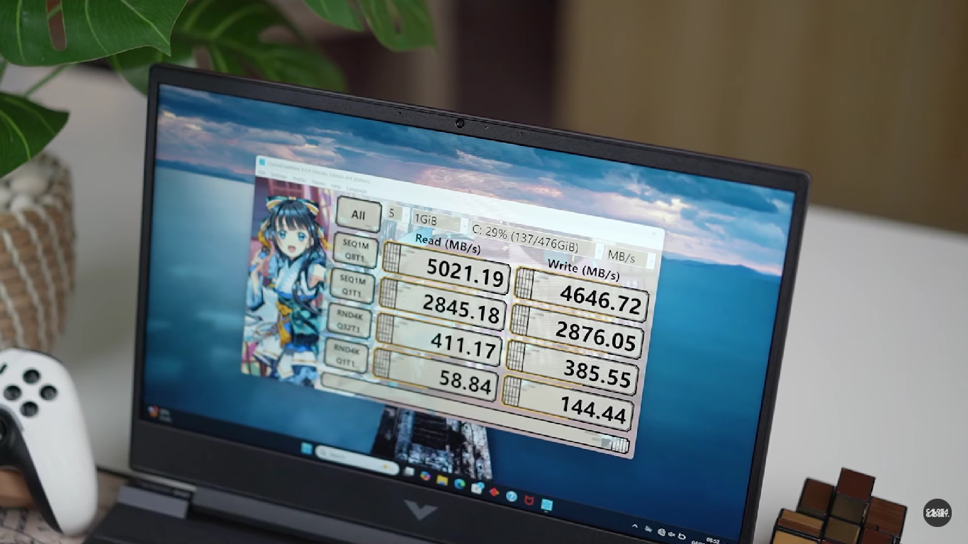 Dalam pengujian awal menggunakan CrystalDiskMark, kecepatan SSD mencapai angka sekitar 5000 MBps untuk read dan 4600 MBps untuk write. Baterai laptop ini mampu bertahan hingga 10 jam dalam mode ringan (tanpa koneksi internet dan backlight.