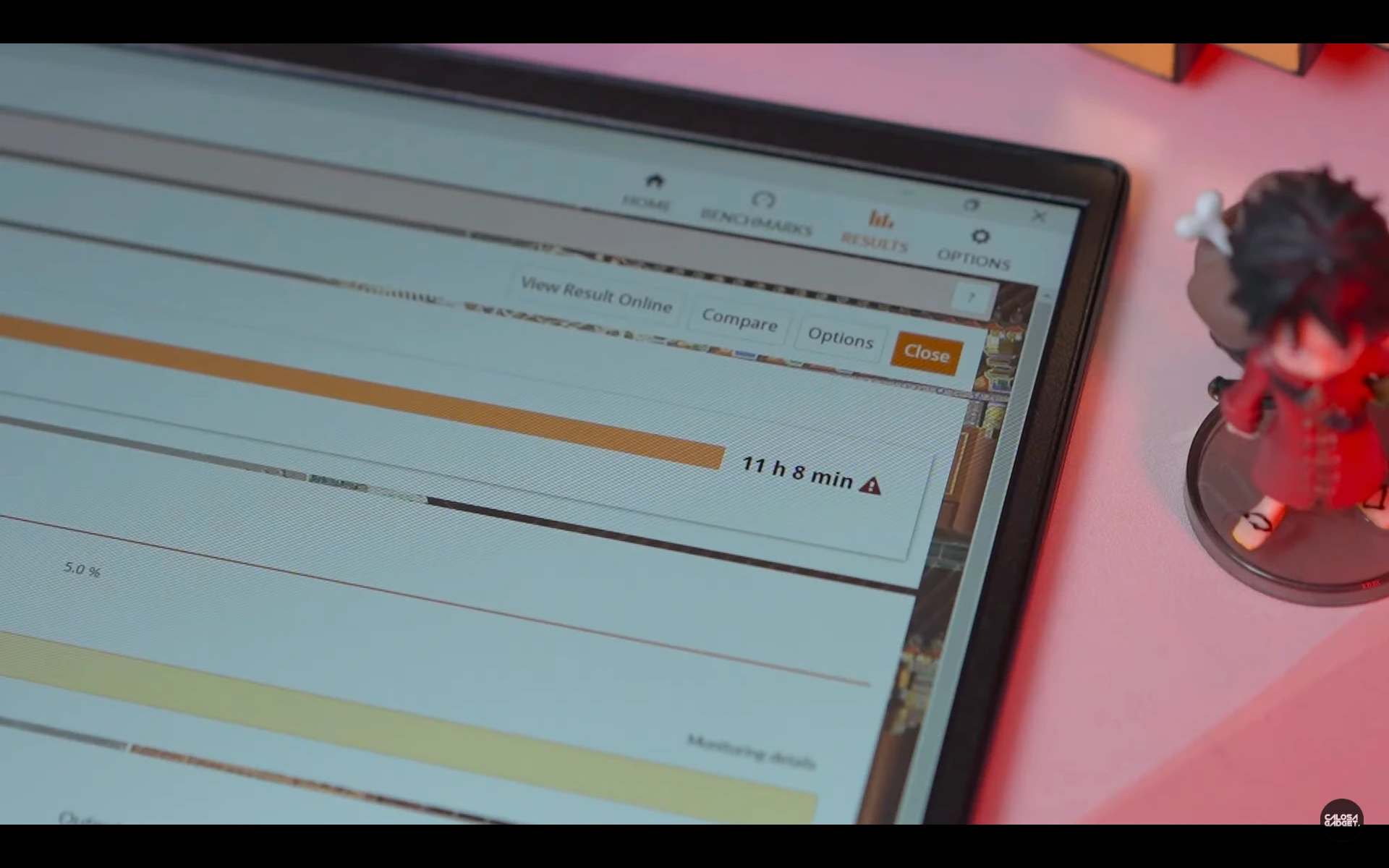 Dalam tes menggunakan PCMark 10 Modern Office, laptop ini mampu bertahan hingga 11 jam dengan pengaturan layar 50% tanpa koneksi internet.