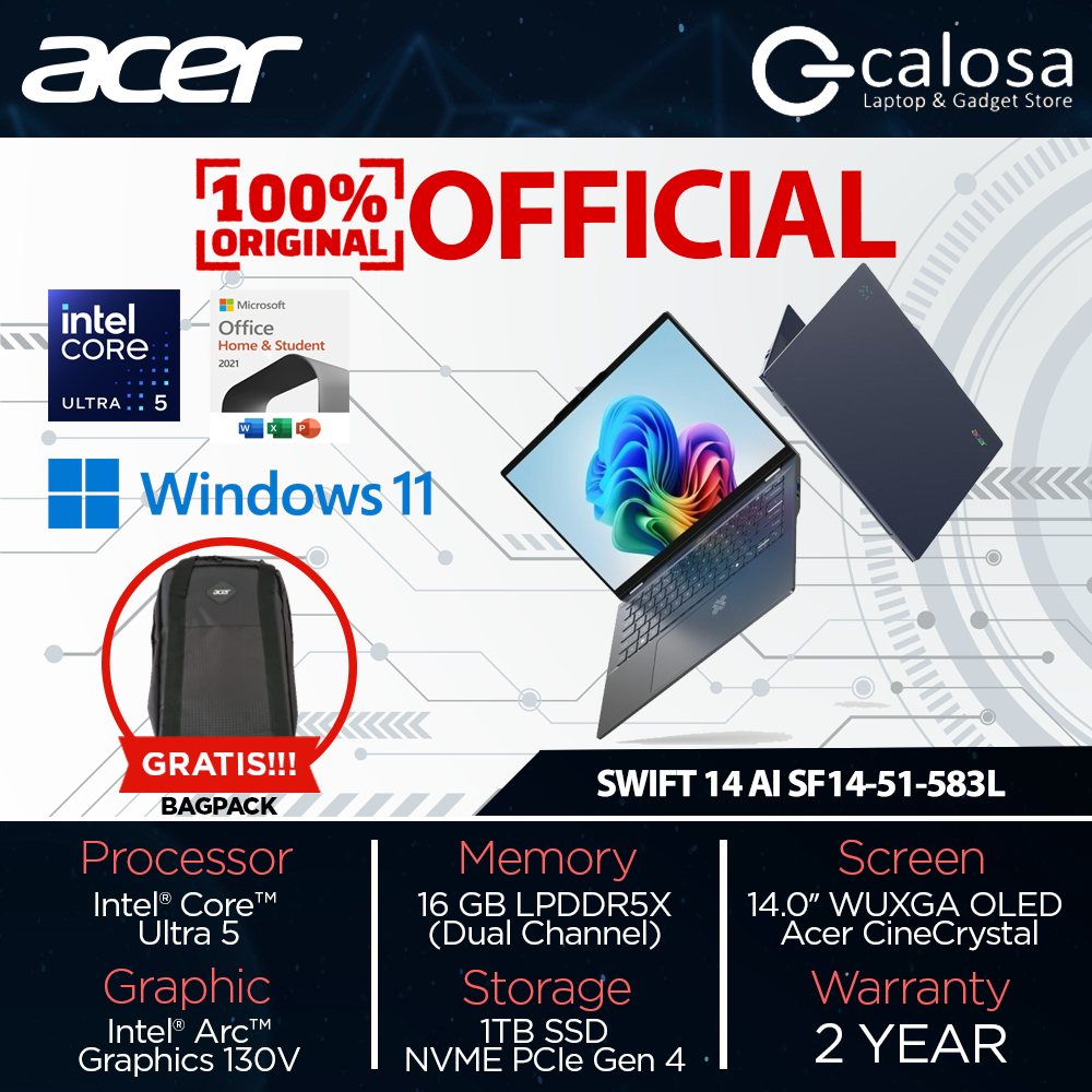 ACER SWIFT 14 AI SF14-51-583L ULTRA 5-226V 14'' UMA WIN 11 STEAM BLUE