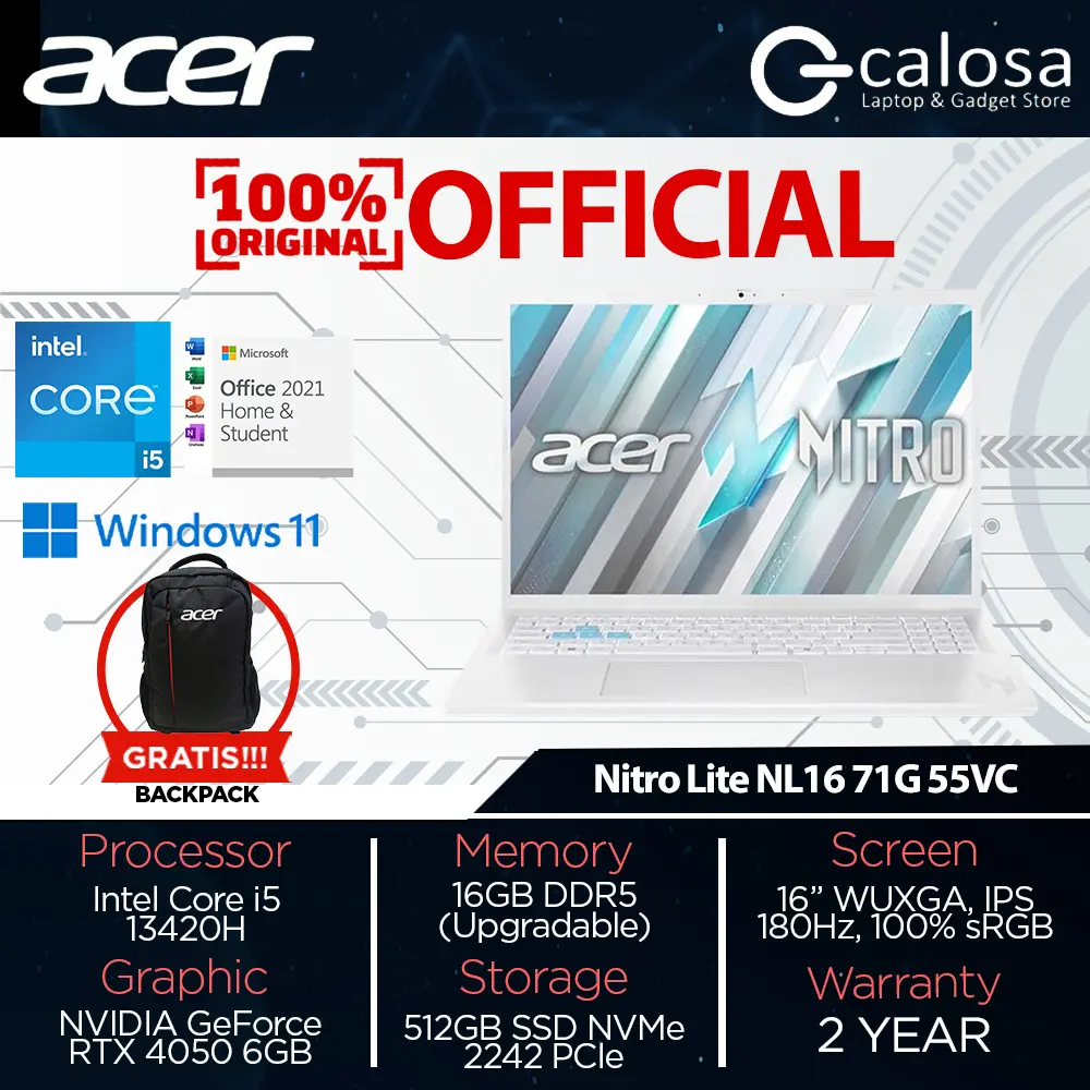 ACER NITRO LITE NL16-71G-55VC I5-13420H 16'' RTX4050 6GB WIN 11 PEARL WHITE