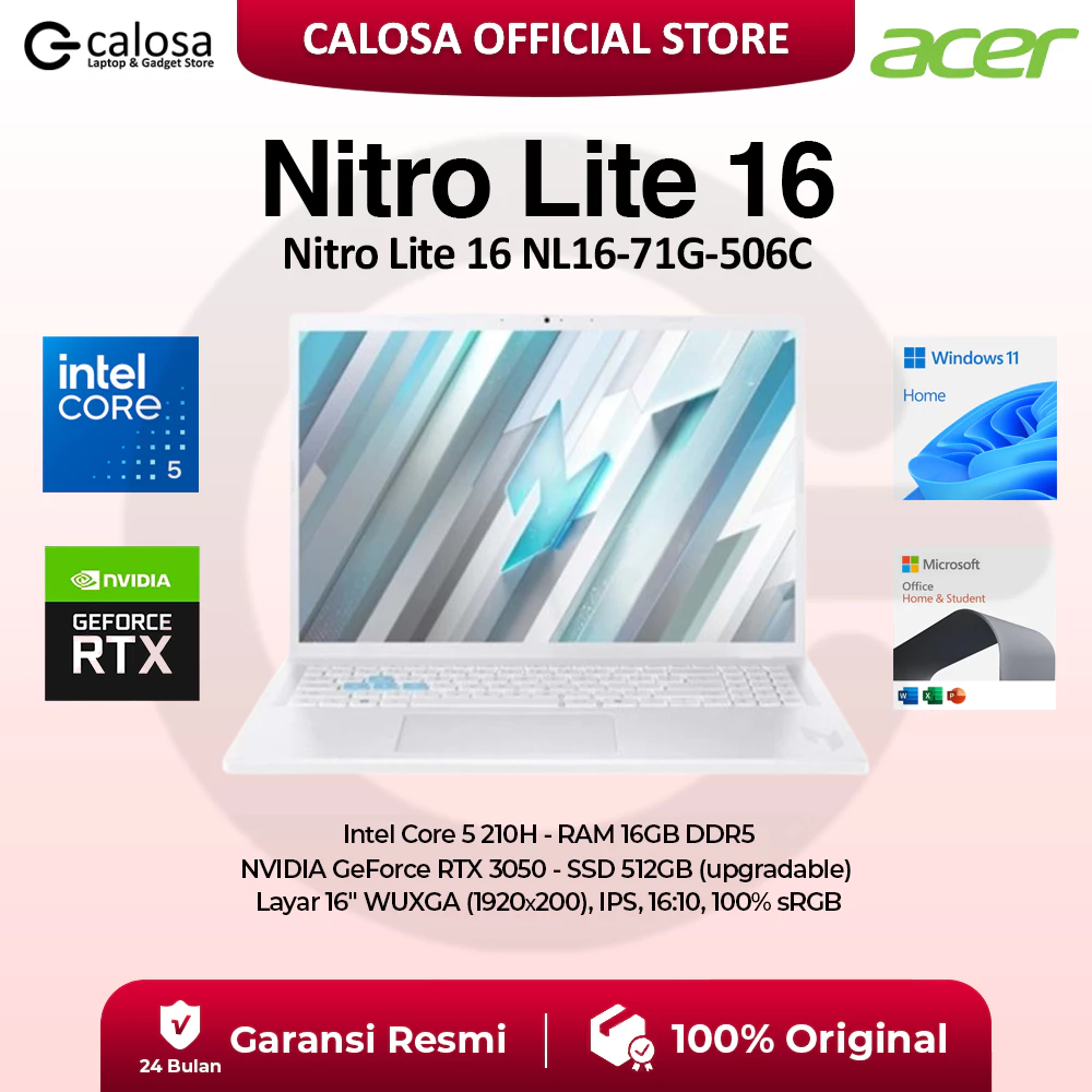 ACER NITRO LITE NL16-71G-506C CORE 5-210H 16'' RTX3050 6GB WIN 11 PEARL WHITE