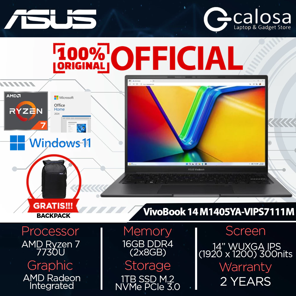 ASUS M1405YA-VIPS7111M RYZEN 7-7730U 14'' UMA WIN 11 INDIE BLACK