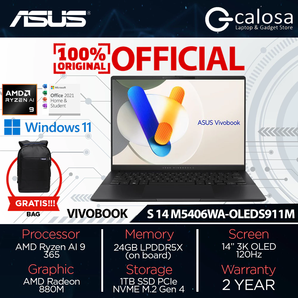 ASUS M5406WA-OLEDS911M RYZEN AI 9-365 14'' UMA WIN 11 NEUTRAL BLACK
