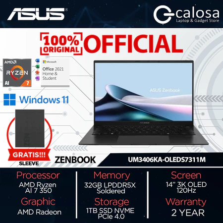 ASUS UM3406KA-OLEDS7311M RYZEN AI 7-350 14'' UMA WIN 11 JADE BLACK