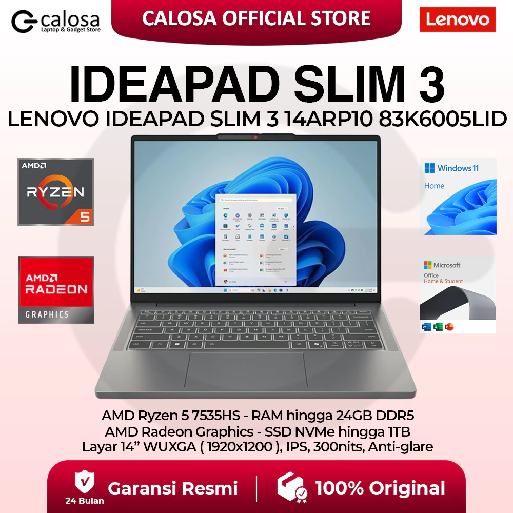 LENOVO IDEAPAD SLIM 3 14ARP10 (83K6005LID) RYZEN 5-7535HS 14'' UMA WIN 11 LUNA GRAY