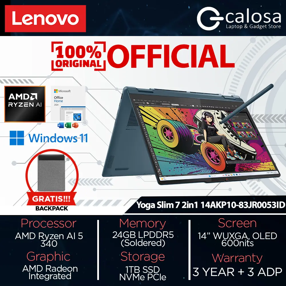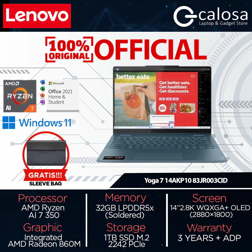 LENOVO YOGA 7 2-in-1 14AKP10 (83JR003CID) RYZEN AI 7-350 14'' UMA WIN 11 TIDAL TEAL