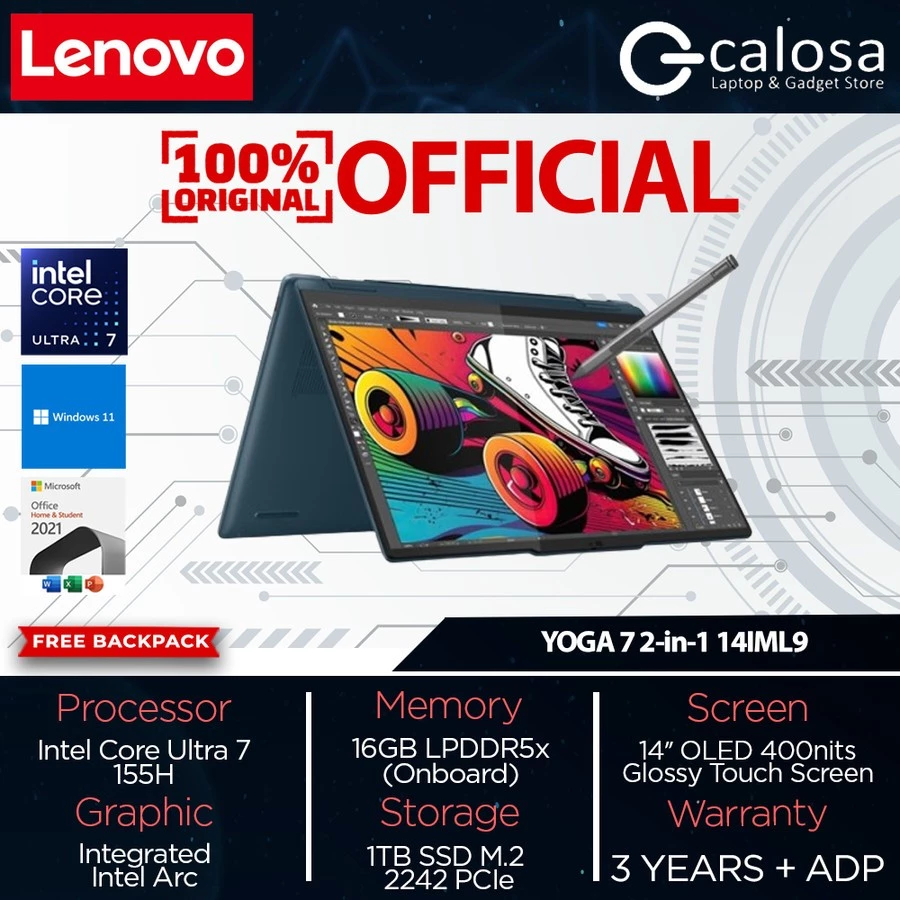 LENOVO YOGA 7 2-in-1 14IML9 (83DJ000XID) ULTRA 7-155H 14'' UMA WIN 11 TIDAL TEAL