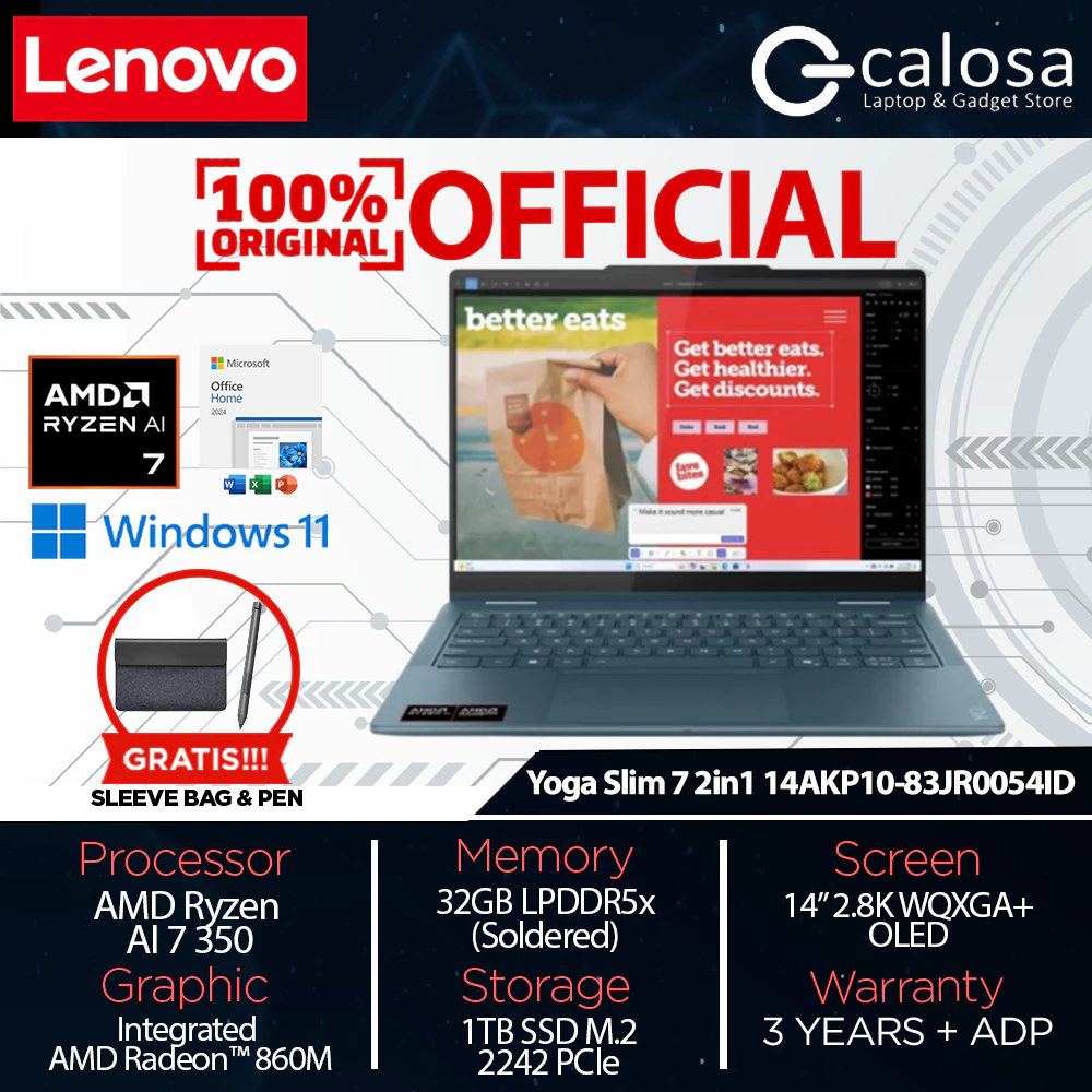 LENOVO YOGA 7 2-in-1 14AKP10 (83JR0054ID) RYZEN AI 7-350 14'' UMA WIN 11 TIDAL TEAL