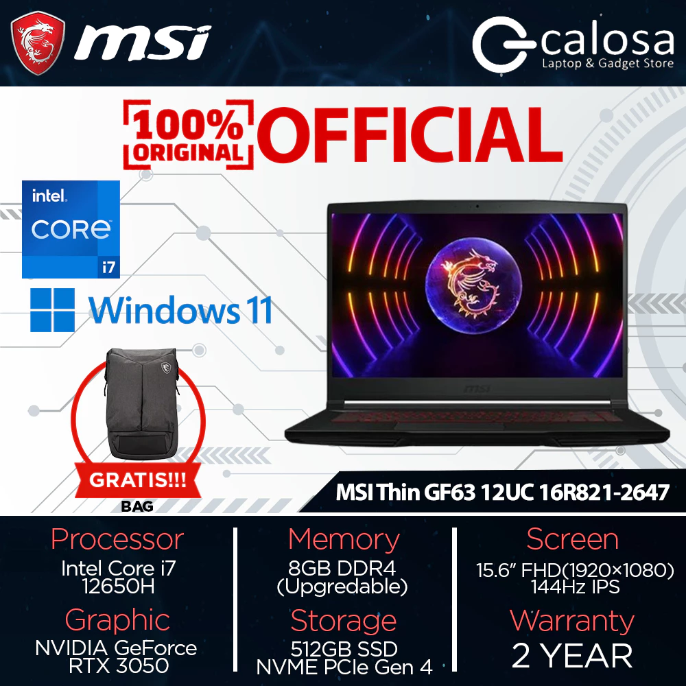 MSI GF63-12UC-9S7-16R821-2647 I7-12650H 15.6'' RTX3050 4GB WIN 11 BLACK