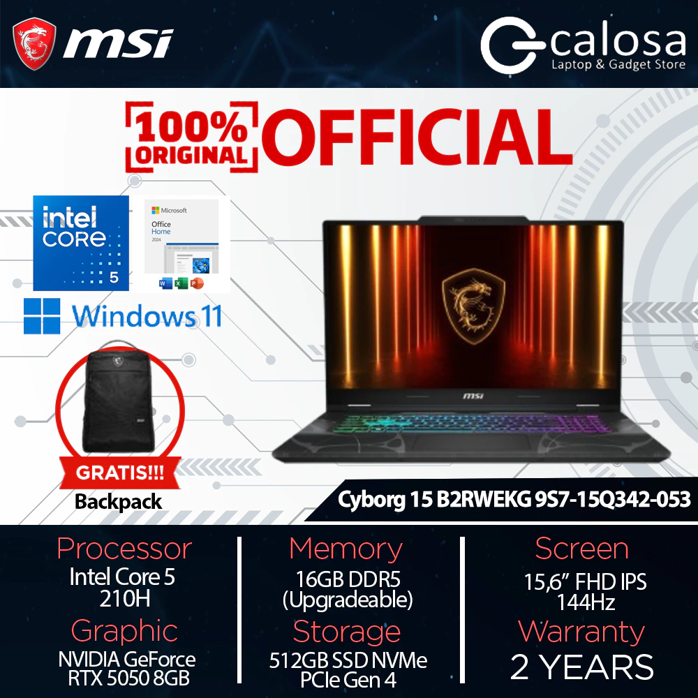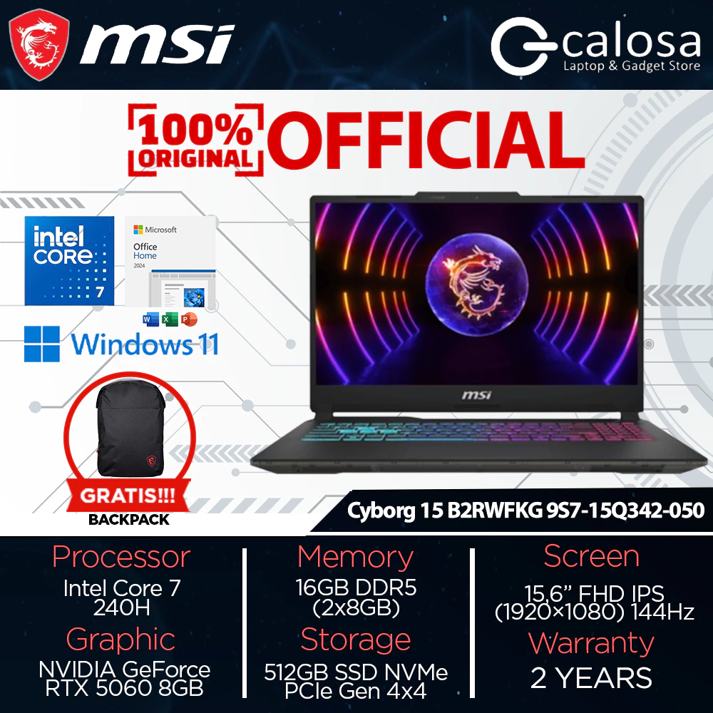 MSI Cyborg 15 B2RWFKG 9S7-15Q342-050 CORE 7-240H 15'' RTX5060 8GB WIN 11 BLACK