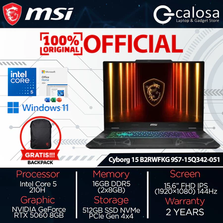 MSI Cyborg 15 B2RWFKG 9S7-15Q342-051 CORE 5-210H 15'' RTX5060 8GB WIN 11 BLACK
