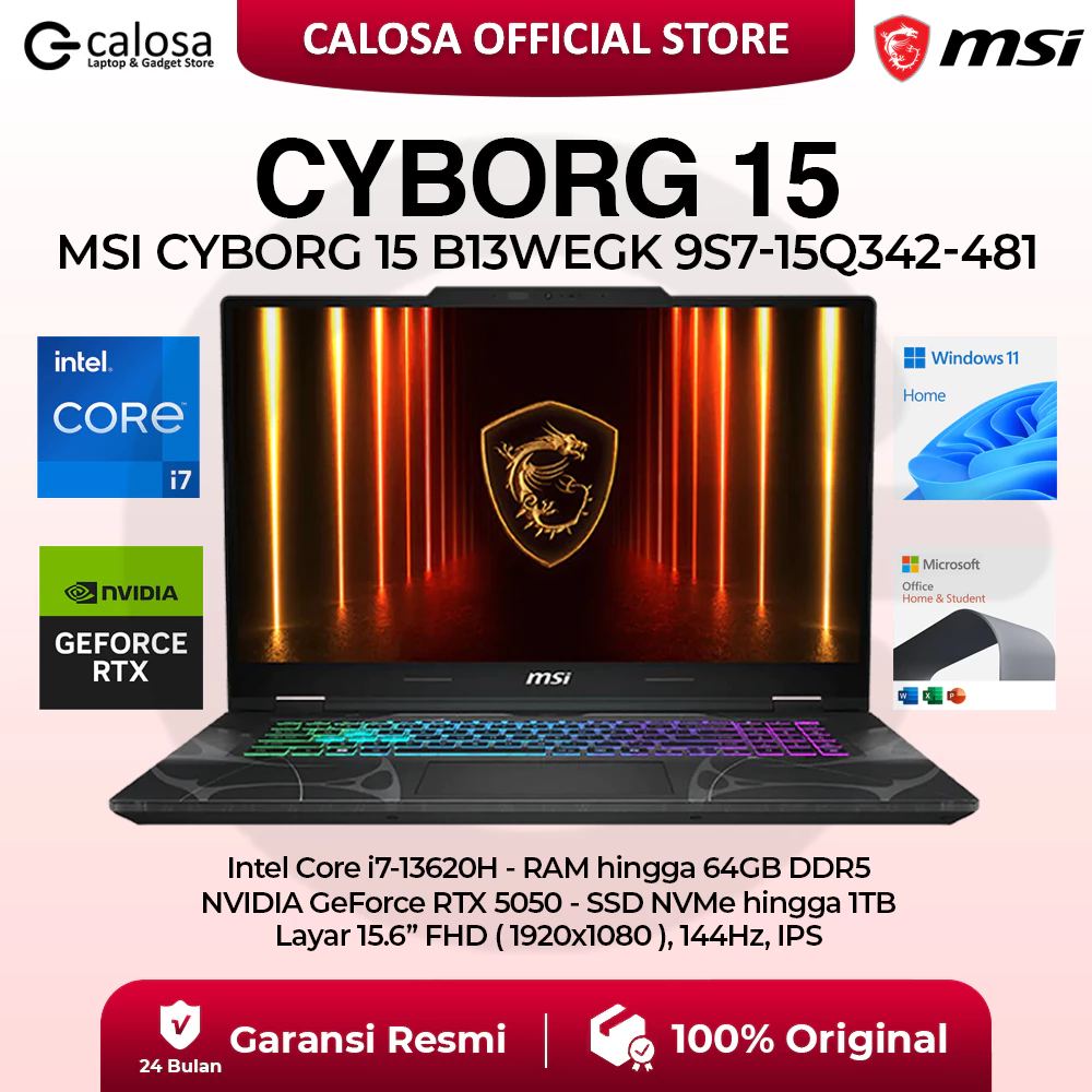 MSI Cyborg 15 B13WEKG 9S7-15Q342-481 i7-13620H 15.6'' RTX5050 8GB WIN 11 BLACK