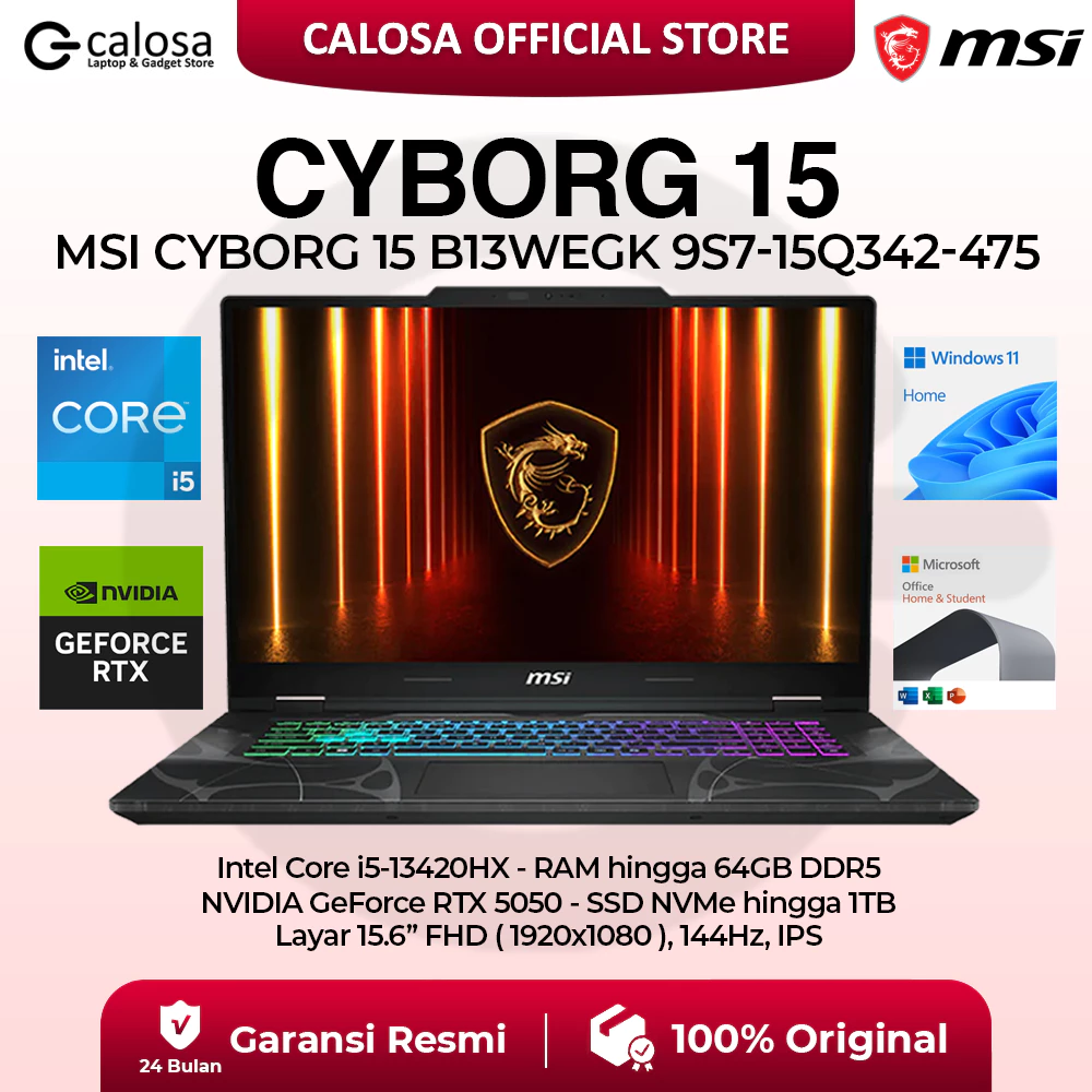 MSI Cyborg 15 B13WEKG 9S7-15Q342-475 i5-13420H 15.6'' RTX5050 8GB WIN 11 BLACK