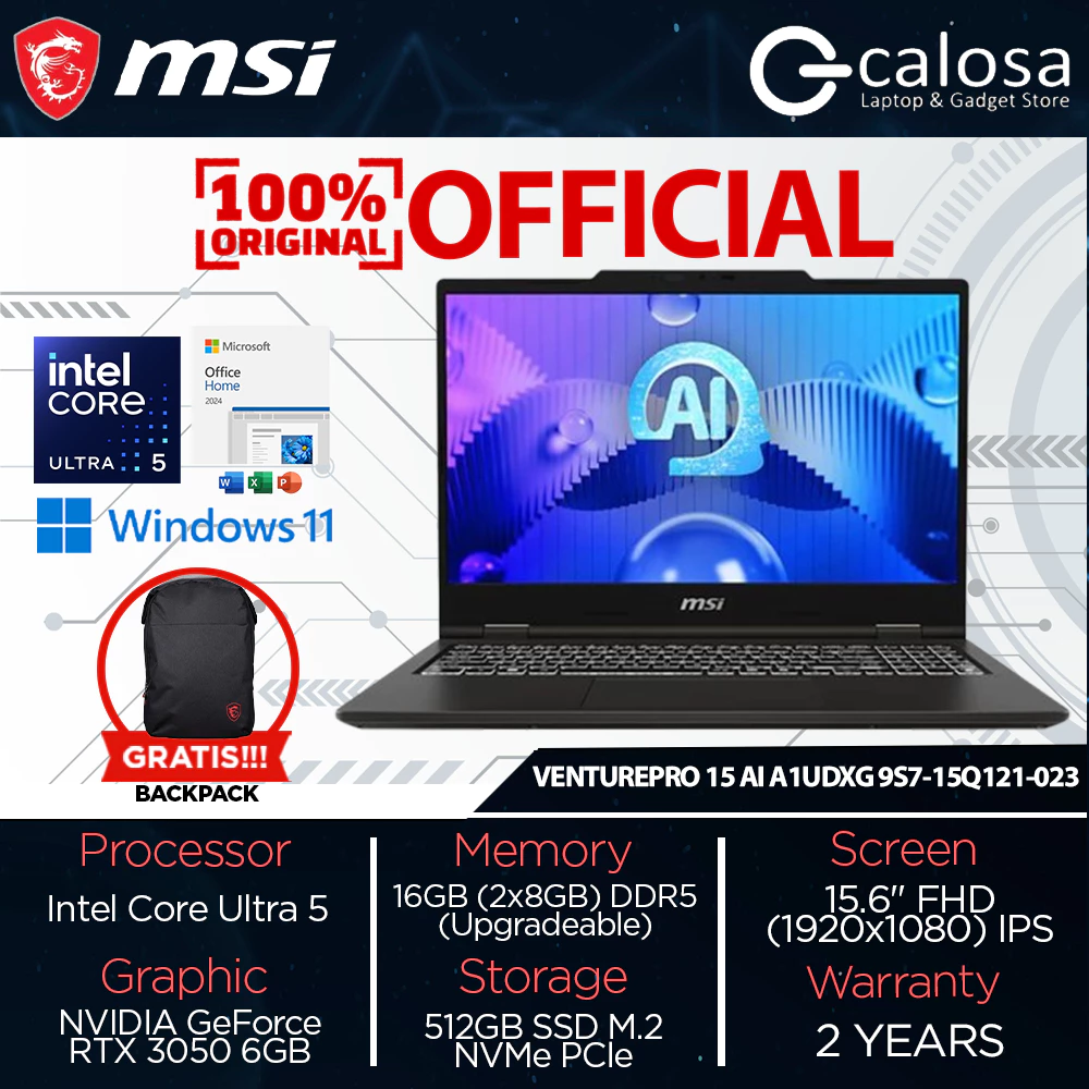 MSI VENTUREPRO 15 AI A1UDXG 9S7-15Q121-023 ULTRA 5-125H 15.6'' RTX 3050 6GB WIN 11 SOLID GRAY