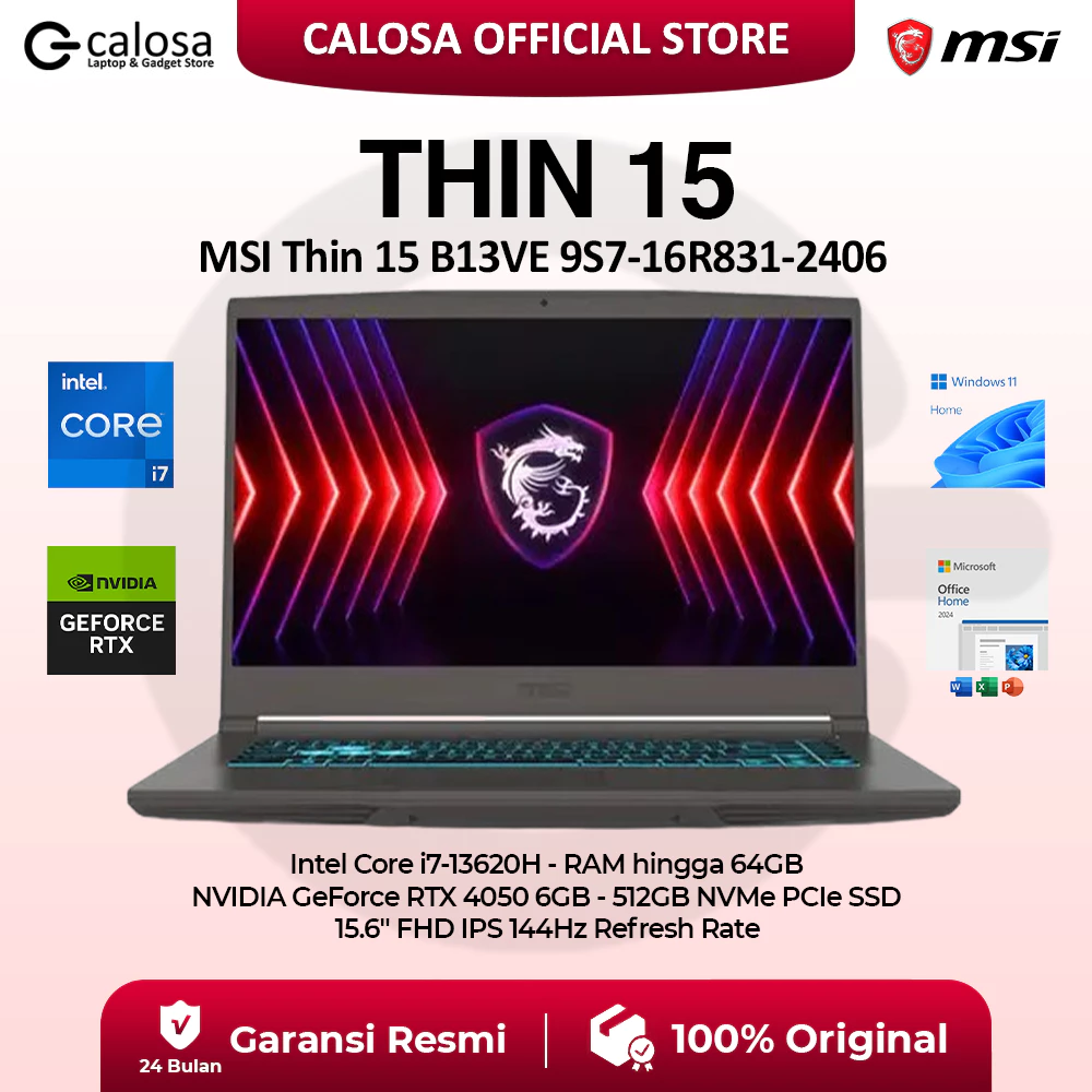 MSI Thin 15 B13VE 9S7-16R831-2406 i7-13620H 15.6'' RTX4050 6GB WIN 11 COSMOS GRAY