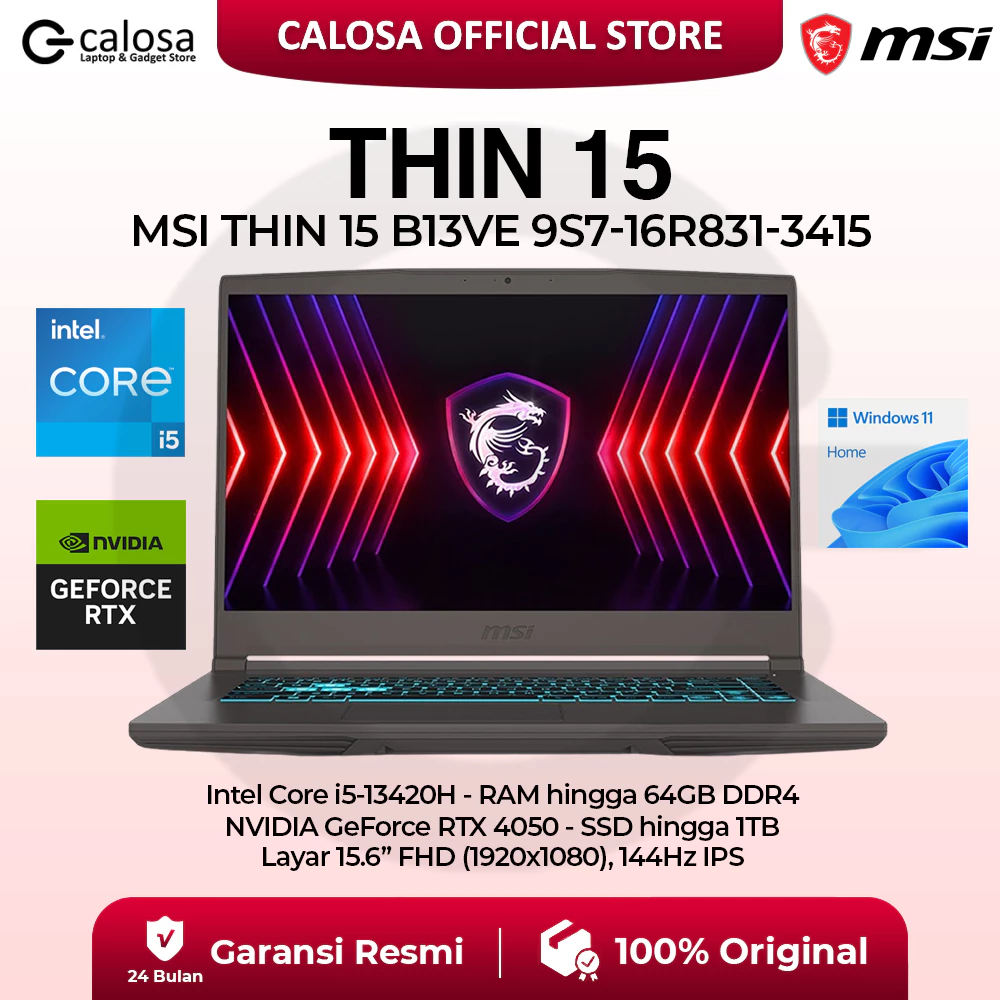 MSI Thin 15 B13VE 9S7-16R831-3415 i5-13420H 15.6'' RTX 4050 6GB WIN 11 COSMOS GRAY