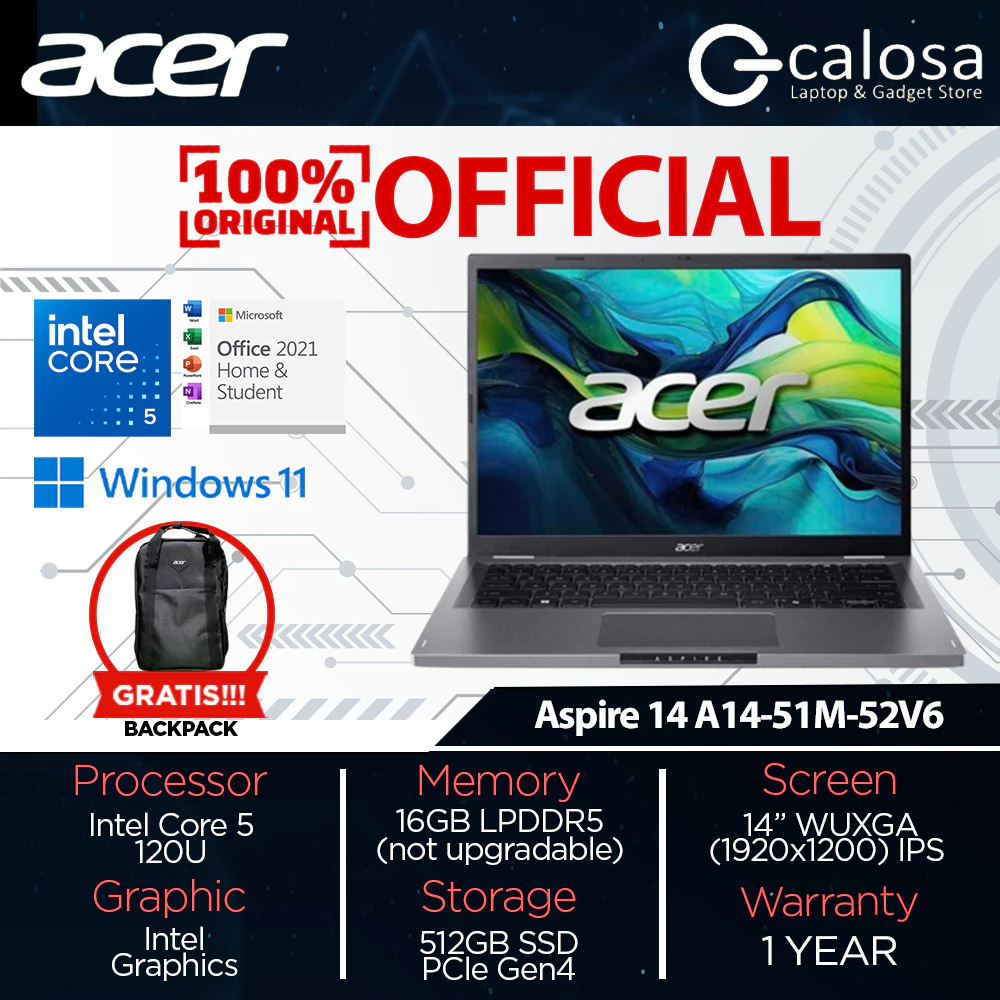 ACER ASPIRE A14-51M-52V6 CORE 5-120U 14'' UMA WIN 11 STEEL GREY