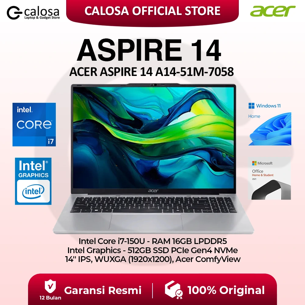 ACER ASPIRE A14-51M-70C1 CORE 7-150U 14'' UMA WIN 11 STEEL GREY