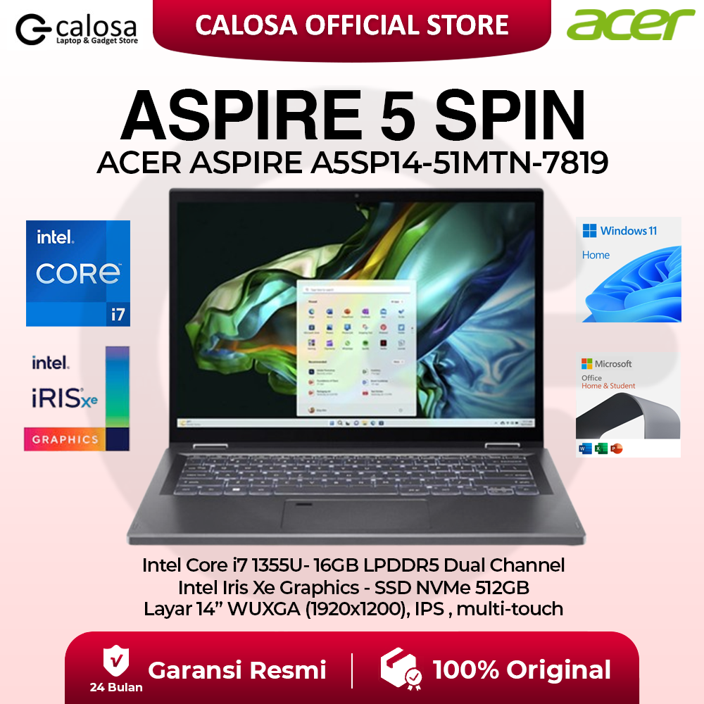 ACER ASPIRE A5SP14-51MTN-7819 I7-1355U 14'' UMA WIN 11 STEEL GREY